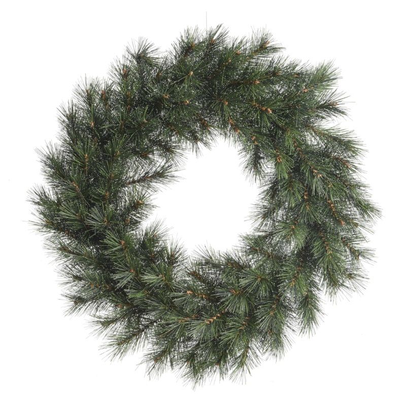 This classic artificial wreath features lush, realistic pine branches lightly dusted with a frosted finish for a subtle wintry touch. Its full, natural look makes it perfect for hanging above a mantel, on a front door, or as part of a statement wall display.